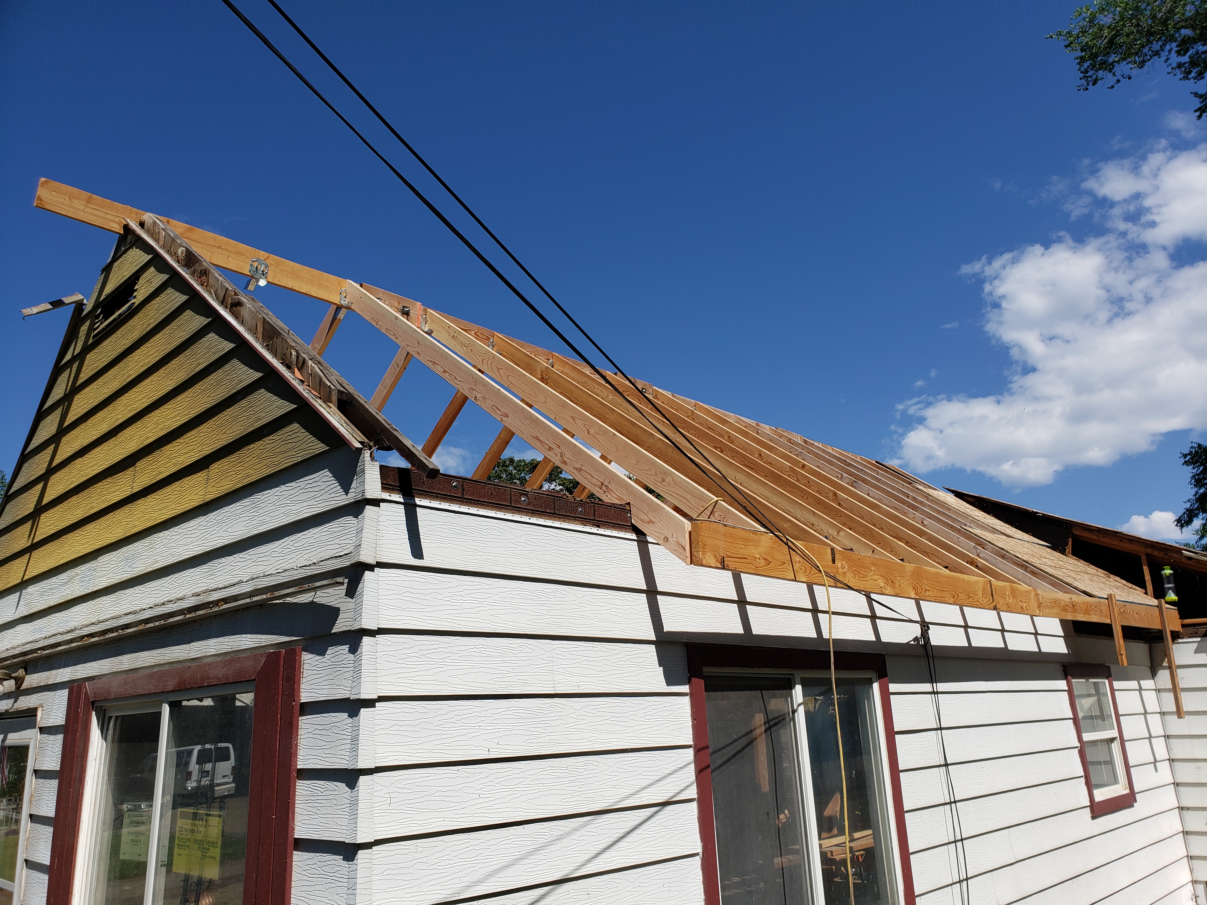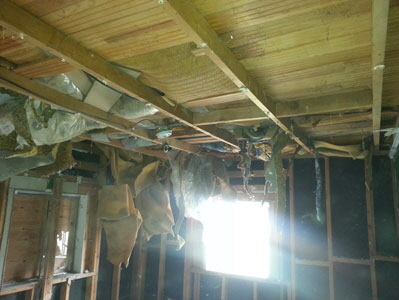 Next we will raise the roof and pull in the walls and add support/repair damaged studs. After that we will continue removing carpet, pad and insulation along with ceilings and wall Sheetrock throughout the remaining 2/3 of home.